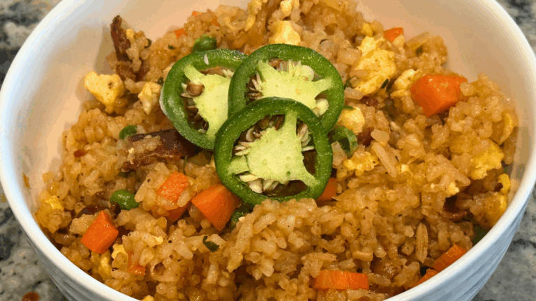 This Jalapeño Bacon Fried Rice is the ultimate comfort food with a kick—smoky bacon, spicy jalapeños, fluffy rice, and bold flavor in every bite. It’s a quick and easy one-pan recipe perfect for weeknight dinners or using up leftover rice. Packed with heat, texture, and that irresistible salty crunch, this dish is sure to be a new favorite for spice lovers and fried rice fans alike.